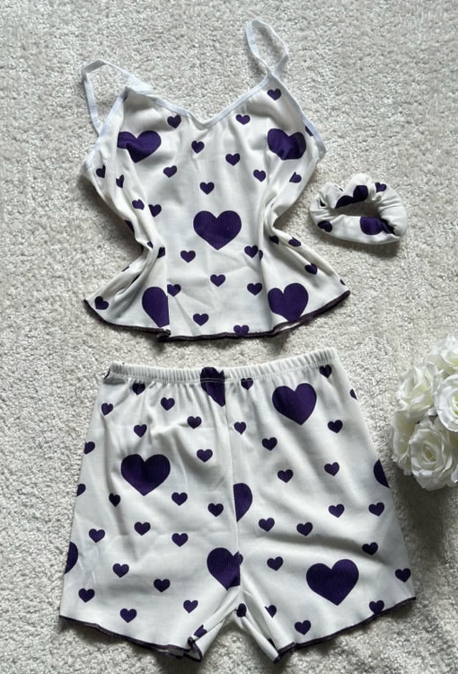 ست تاپ و شورتک کبریتی طرح قلب