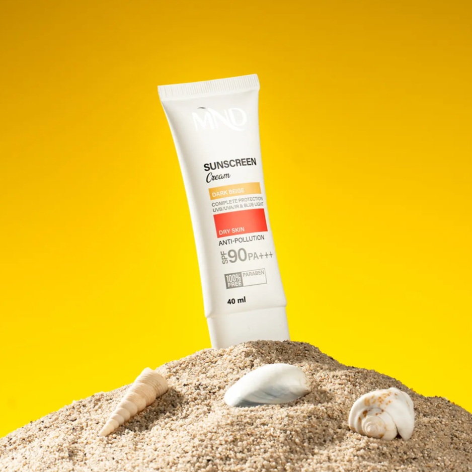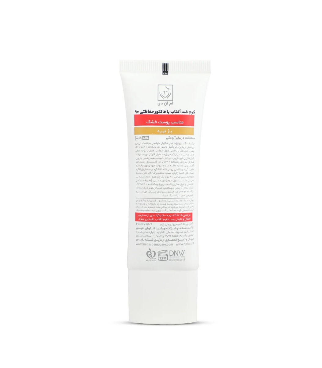 کرم ضد آفتاب با فاکتور حفاظتی 90 (SPF 90) بژ تیره ام ان دی مناسب پوست خشک