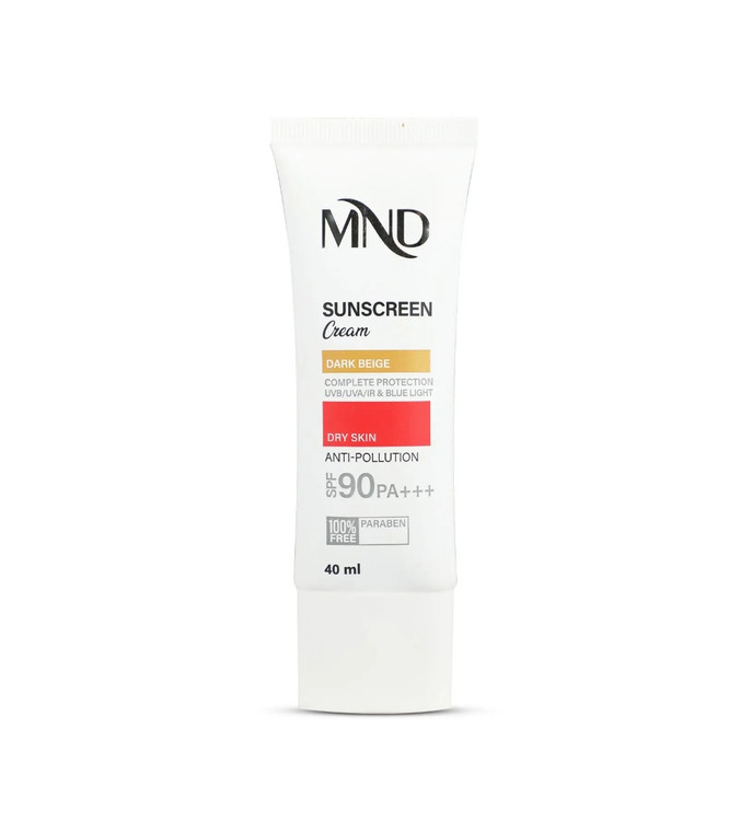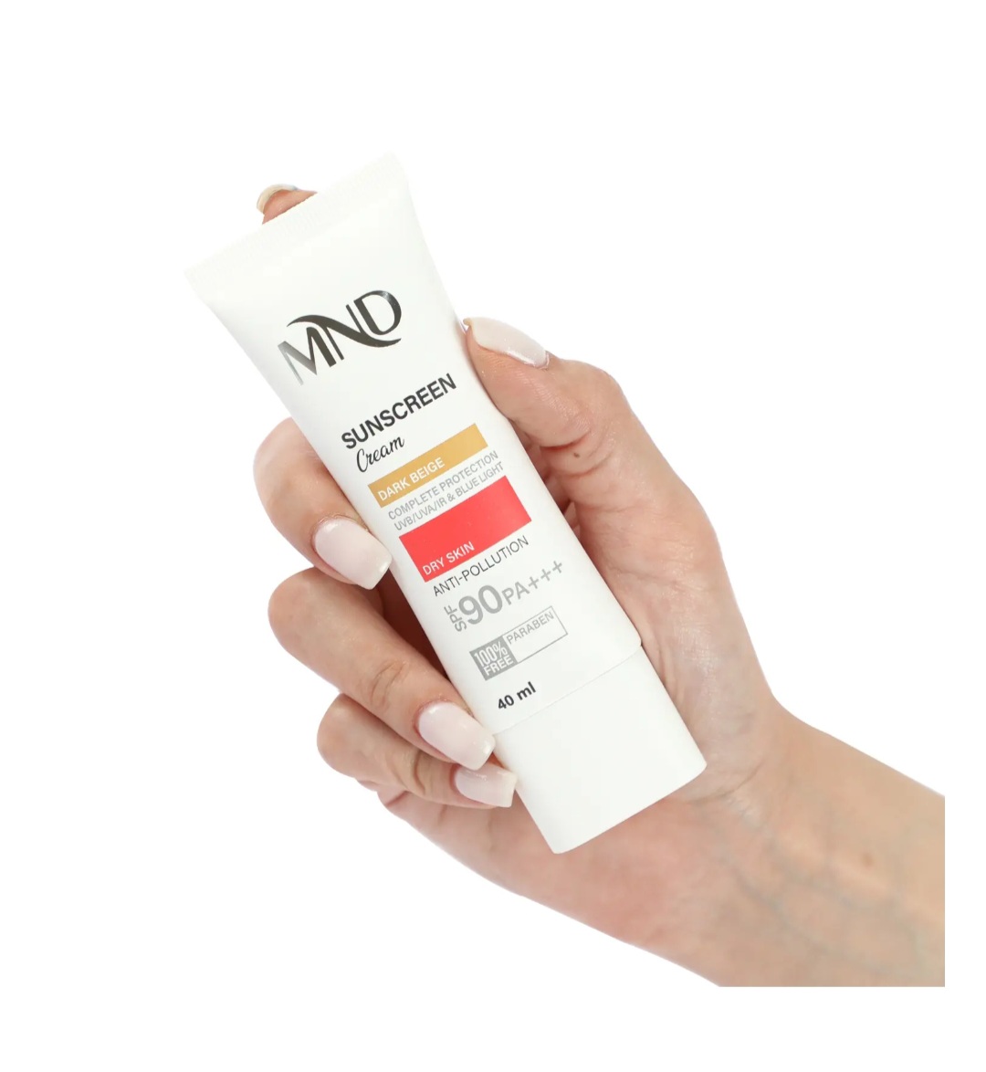 تابش طولانی مدت نور خورشید به پوست، یکی از عوامل پیری زودرس پوست است. در اصل اشعههای UVA و UVB خورشید با ایجاد رادیکالهای آزاد در پوست، موجب آسیب دیدن ساختارهای حیاتی پوست شده و ایجاد لک و چین و چروک را تسریع میکنند. همچنین تحقیقات علمی اخیر نشان دادهاند که طیف مادون قرمز ساطع شده از خورشید و نور آبی منتشر شده از لوازم الکترونیکی (رایانه، گوشی همراه، ...) هم در آسیب دیدن پوست نقش دارند، درنتیجه برای تولید یک محصول ضدآفتاب کامل، مقابله با این اشعهها نیز باید مورد توجه قرار بگیرد. این کرم ضدآفتاب MND با فاکتور حفاظتی 90، بهصورت فاقد پارابن، به رنگ بژ تیره و مناسب برای پوست خشک تولید شده و با بهرهگیری از ترکیبات و فیلترهای مناسب قادر است مانع صدمه دیدن پوست توسط اشعههای فوقالذکر شود.