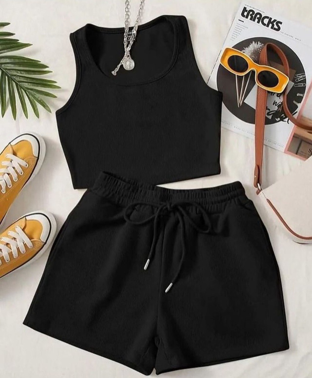 ست کراپ و شورتک جنس فانریپ کبریتی فری سایز مناسب سایز ۳۶ تا ۴۴ رنگ قهوهای مطابق با عکس برای دیدن محصولات بیشتر و مشابه به دسته لباس ست زیر زنانه کلیک کنید
