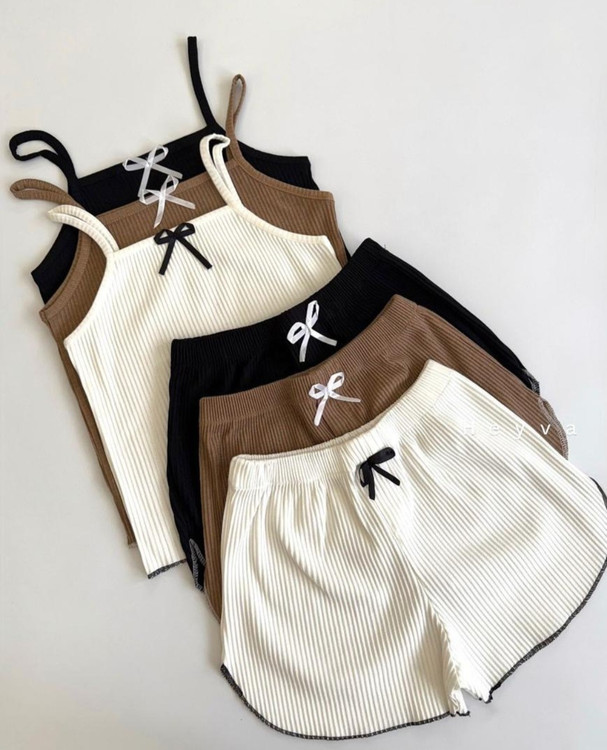 ست تاپ و شورتک پاپیون زنانه و دخترانه